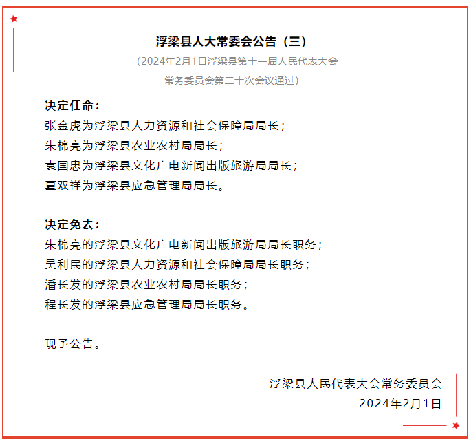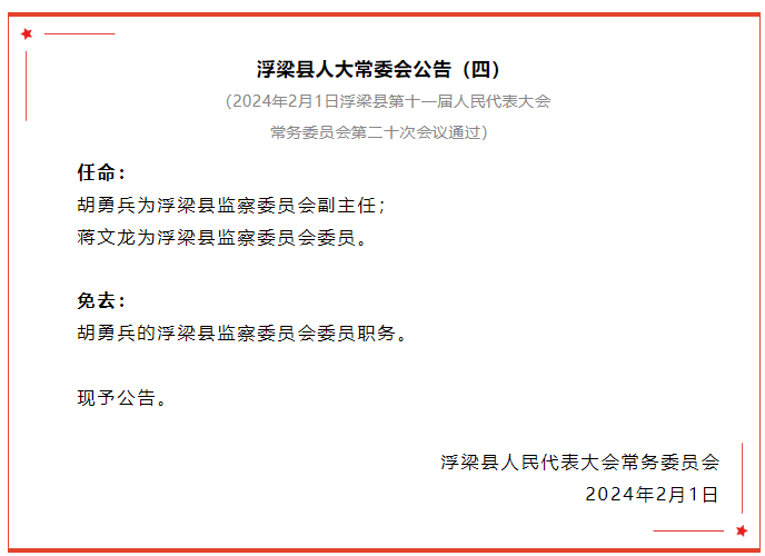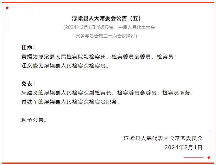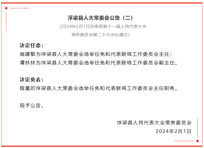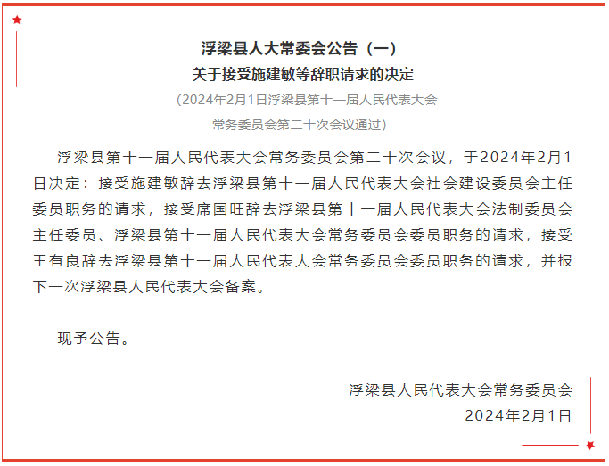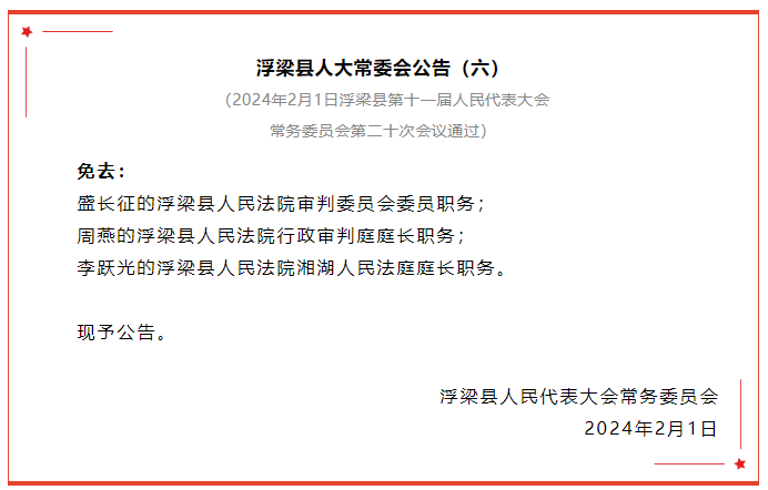 浮梁县人大常委会公告!通过一批人事任免事项!