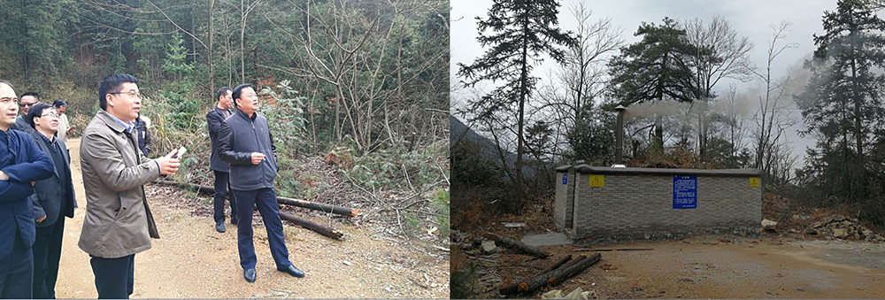 在汪湖村虎头岗,市气象局局长周山向杨新华一行介绍人工影响天气是气象部门利用气候资源的一项重要手段,地面碘化银对抗旱减灾、生态保护、水源涵养、农业生产、茶叶增产和降低森林火险等工作发挥了积极作用。在现场,县气象局还通过远程智能遥控,进行了人工影响天气作业演示。